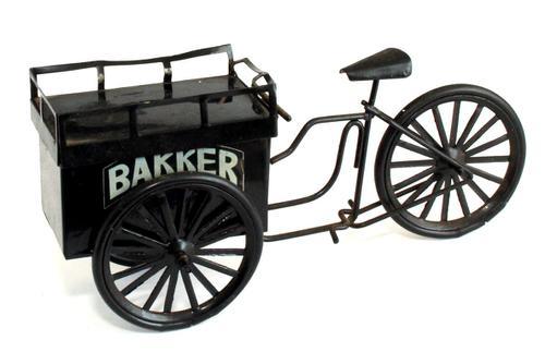 Miniatuur bakkerskar, bakfiets van ijzer met tekst B...