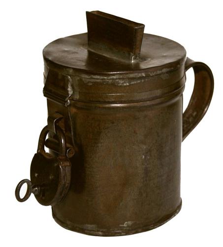 Collectebus. Blank metalen ronde bus met handvat en...