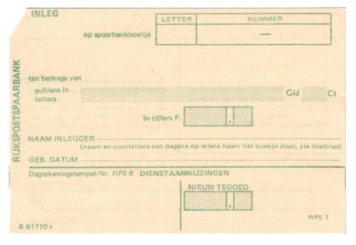 Inlegkaart Rijkspostspaarbank.