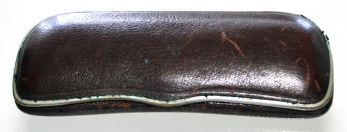 Schaar, Briefopener, Liniaal in een gestikte lederen...