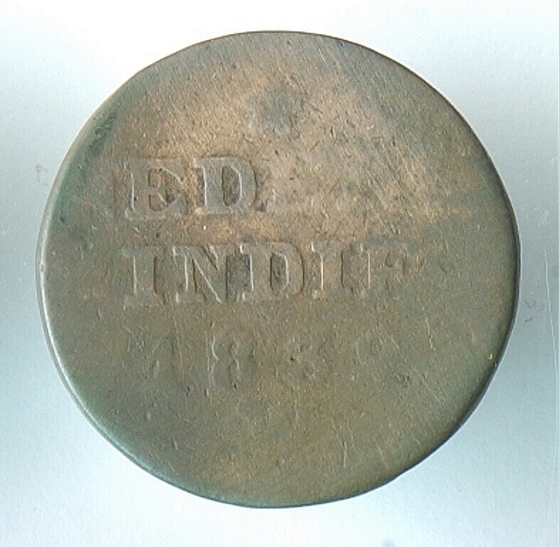 Munt, koperen dubbele duit Indiae Batav, 1822, wapen...