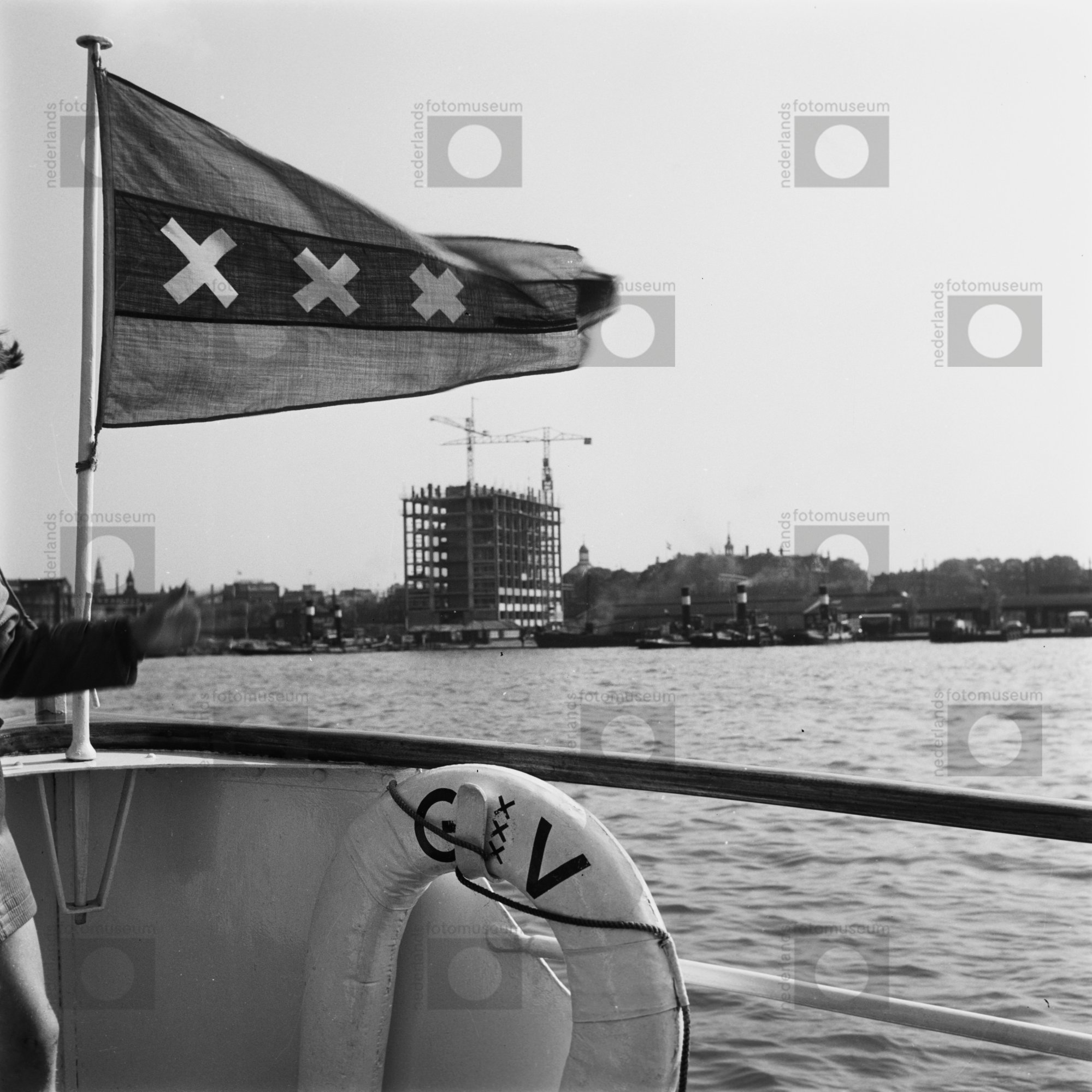 Amsterdam. Amsterdamse vlag wappert op een Amsterdam...