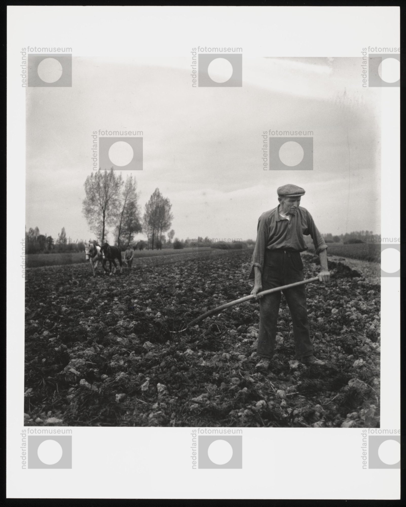 Ploegen met twee paarden, Orvelte, 1944 (zwart-wit f...