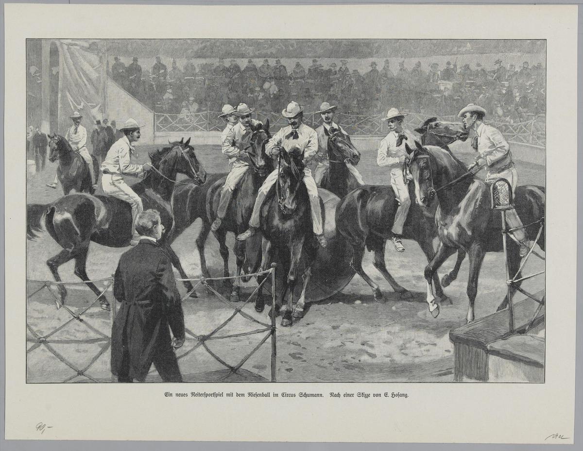 Ein neues Reitersportspiel mit dem Riesenball im Cir...