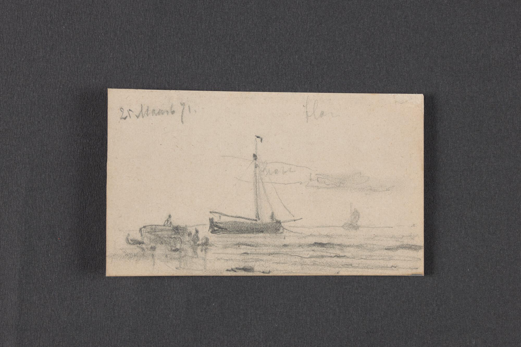 Studie van een kotter en een ander dwarsgetuigd schi...
