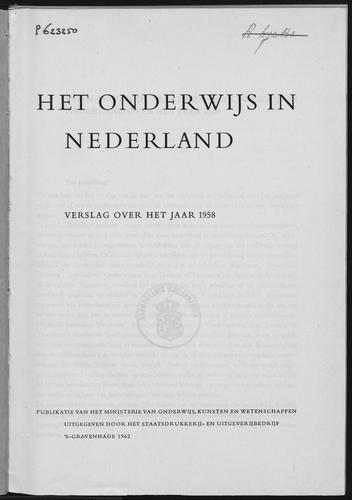 Het onderwijs in Nederland. Verslag over het jaar 1958