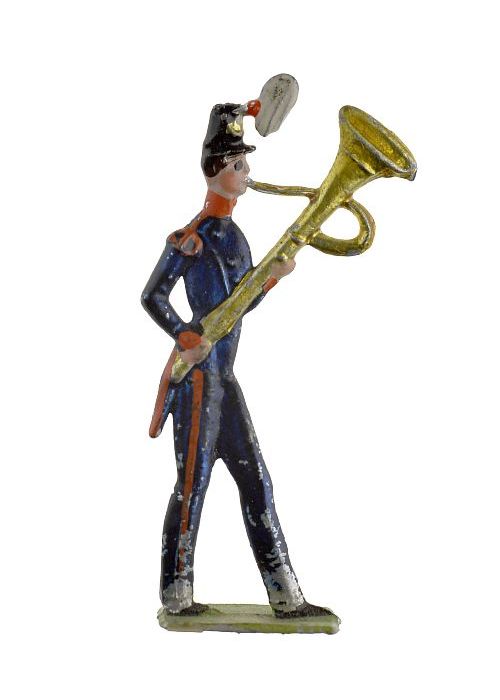 Tinnen figuren in de vorm van Pruisische trompettist...