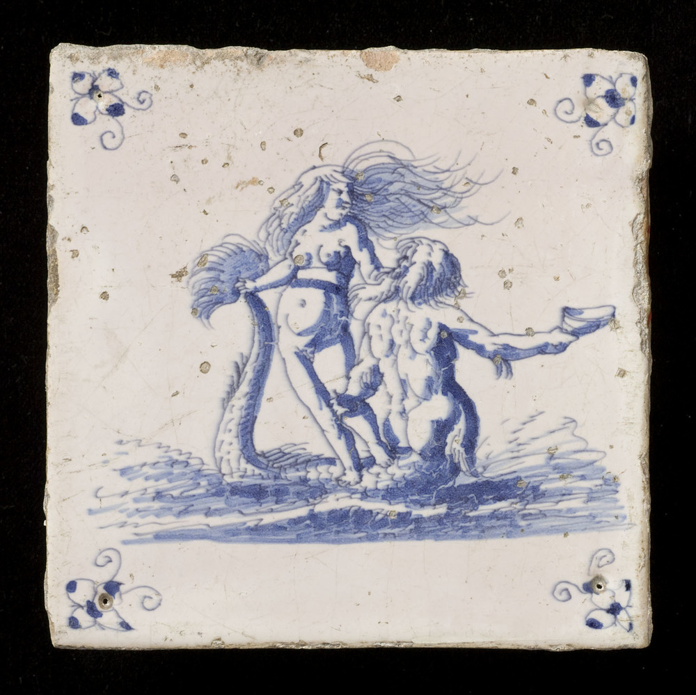 Tegel van keramiek met tinglazuur, voorstellende: ma...