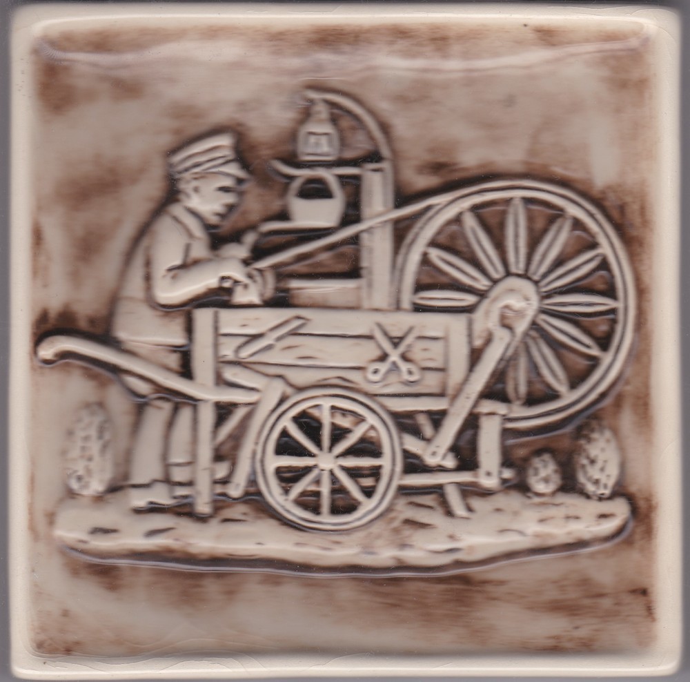 Tegel in reliëf, met voorstelling: scharenslijper, v...