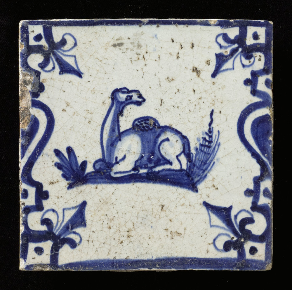 Tegel in tinglazuur, voorstellende zoogdier gemaakt ...