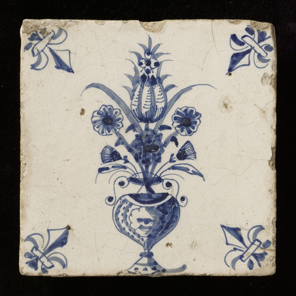 Tegel van keramiek, tinglazuur, voorstellende getipp...