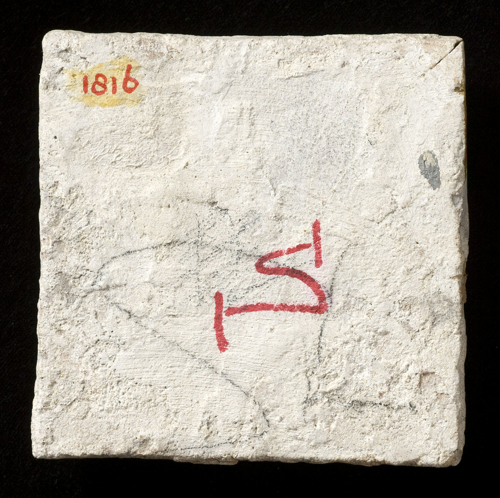 Tegel van keramiek met tinglazuur, voorstellende: or...