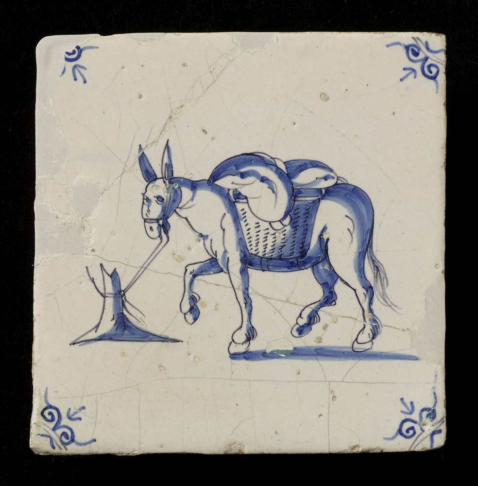 tegel van aardewerk met tinglazuur, voorstellende: h...