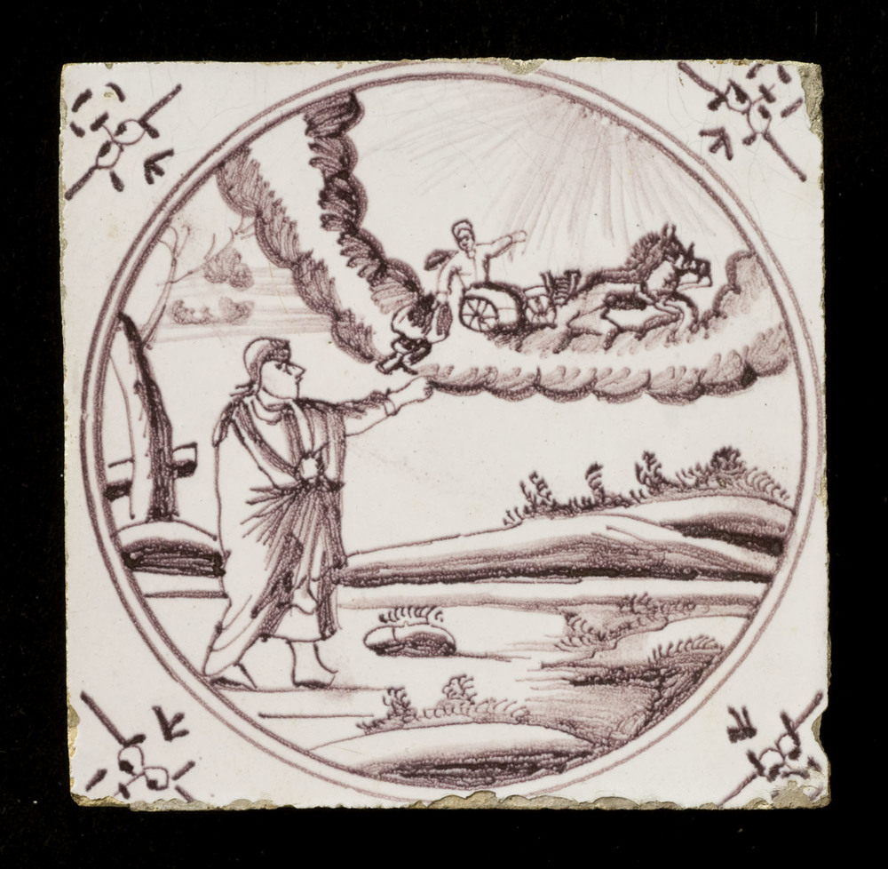 Tegel van aardewerk met tinglazuur, voorstellende he...