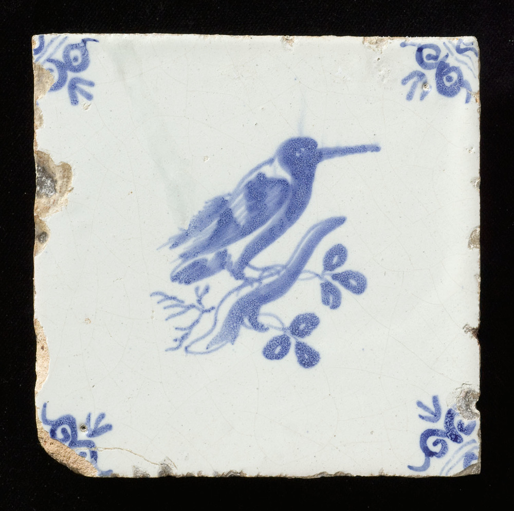 Tegel in tinglazuur, voorstellende vogel gemaakt in ...