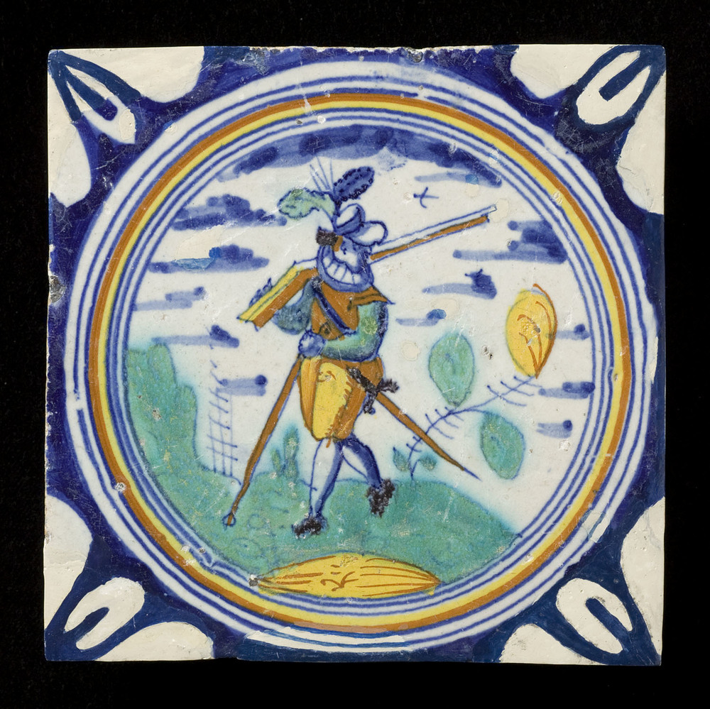 Tegel van keramiek, tinglazuur, voorstellende krijgs...