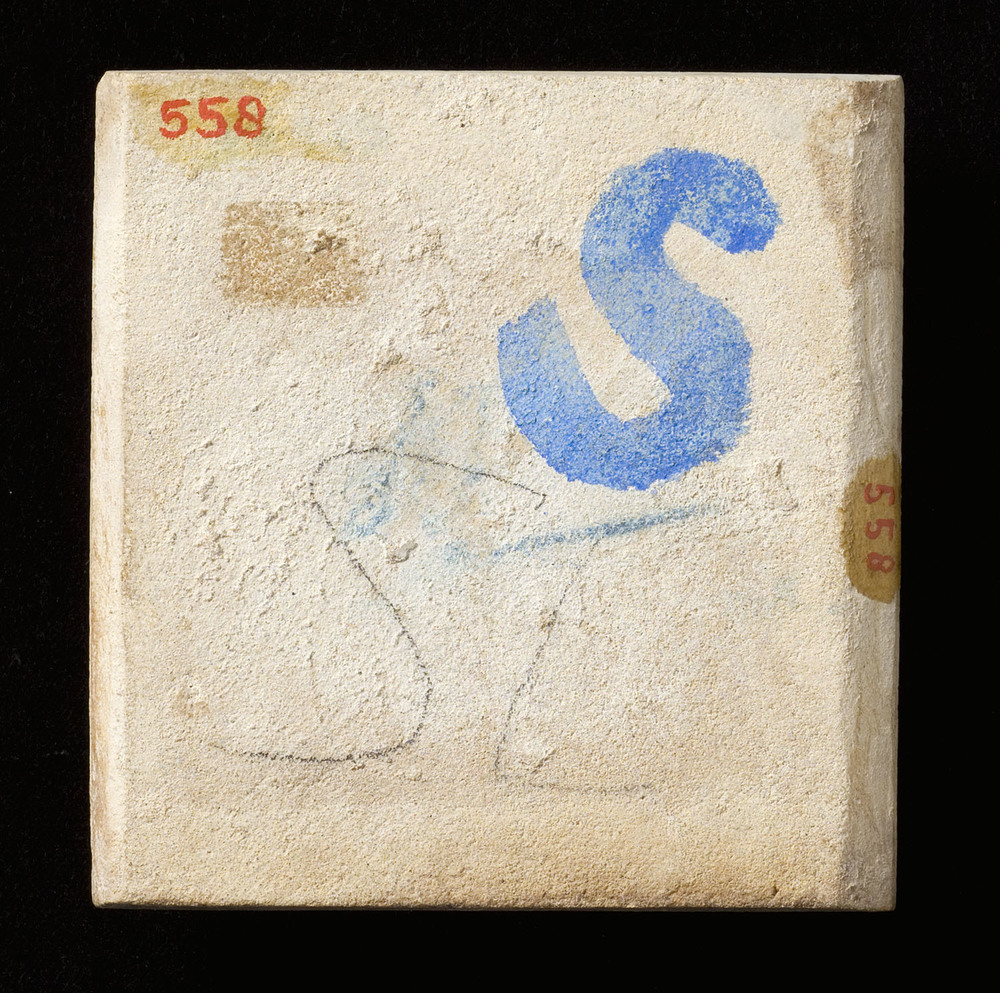 tegel van aardewerk met tinglazuur, voorstellende: C...