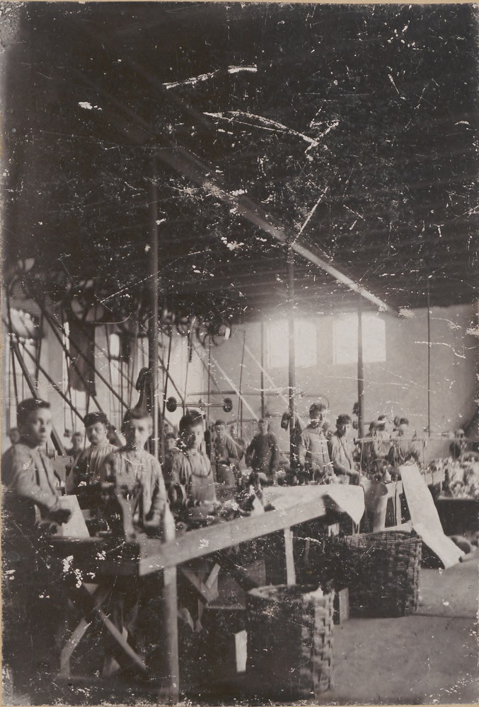 In een werkplaats bij Van Fastenhout poseren jonge f...