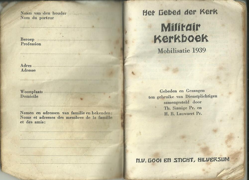 Militair Kerkboek. mobilisatie 1939
