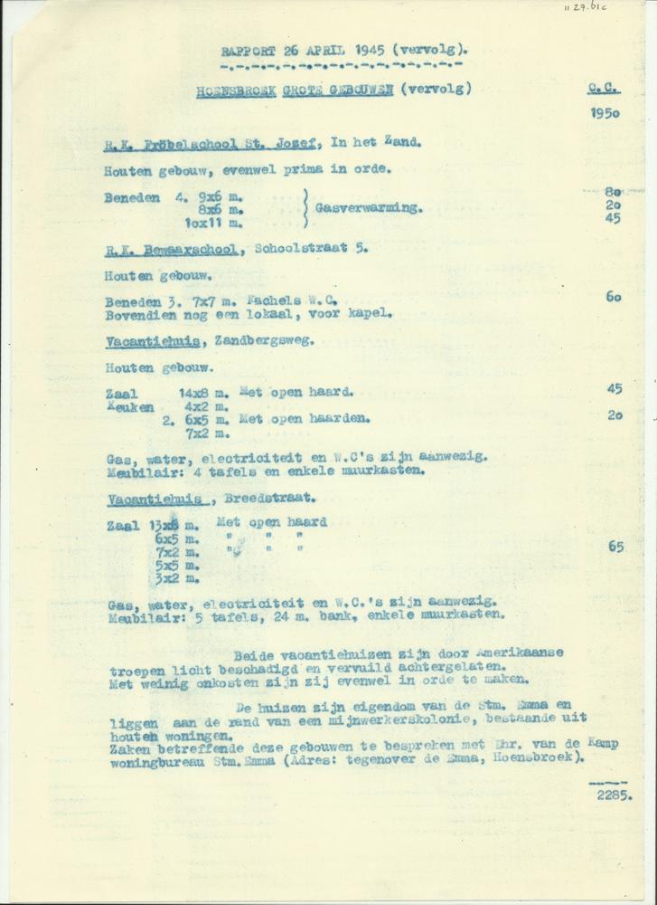 Rapport 26 april 1945 over Hoensbroek door J. Schellinx