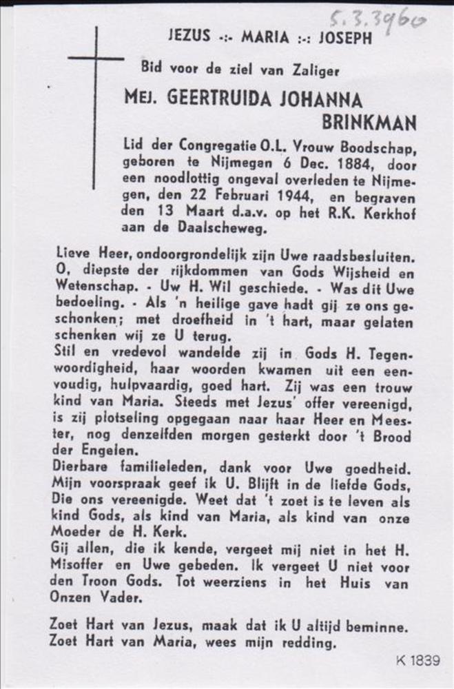bidprentje (kopie) Geertruida Johanna Brinkman