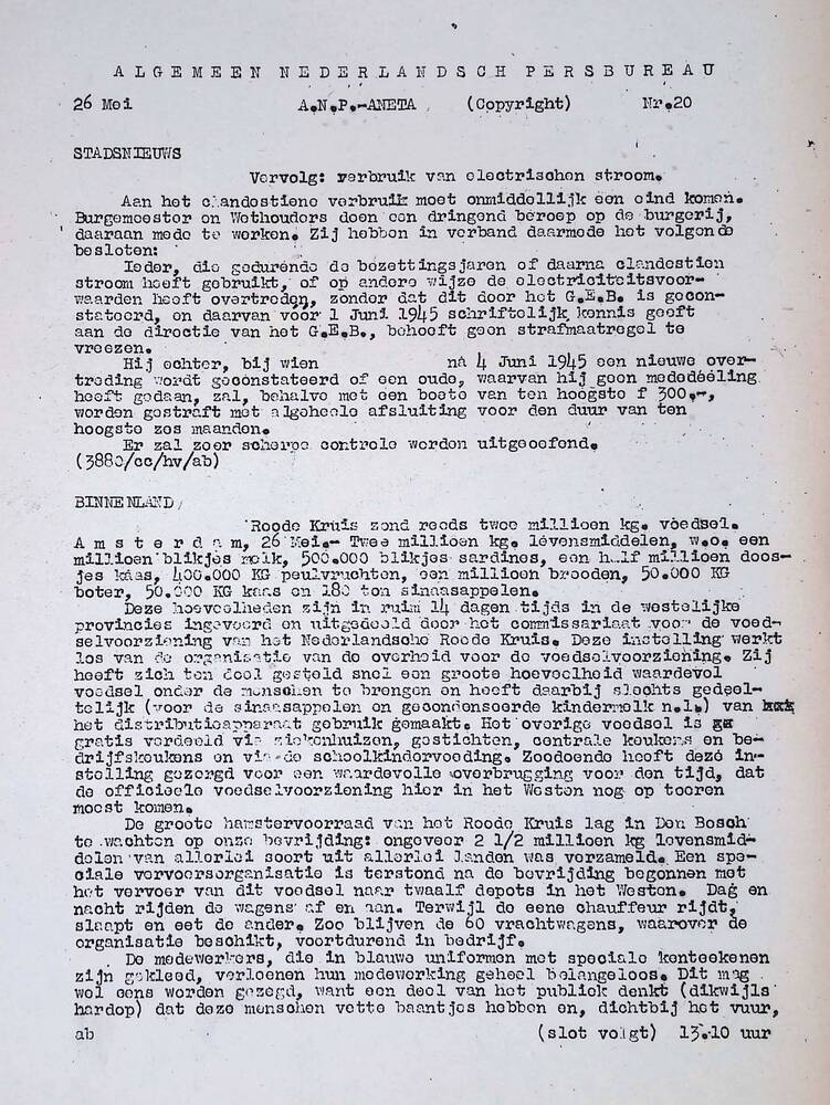 Algemeen Nederlandsch Persbureau, mededelingen, 26 m...