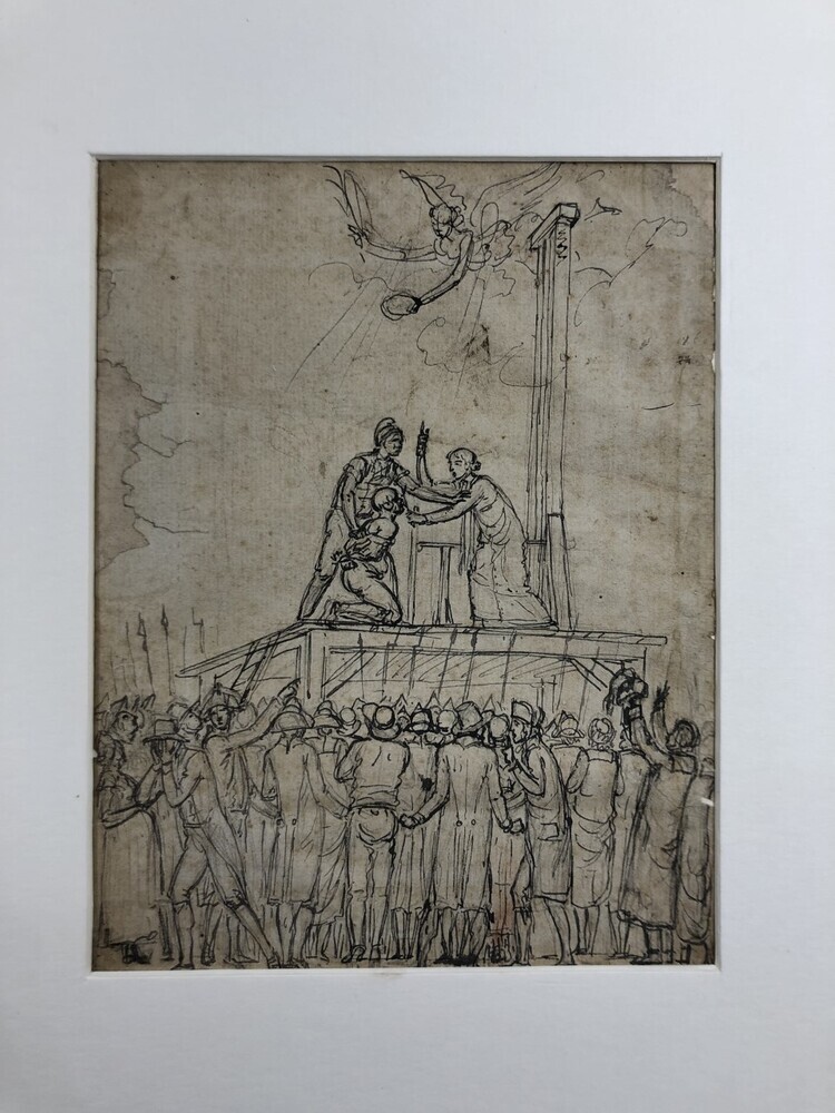 Pentekening van een guillotine-scene ten tijde van d...