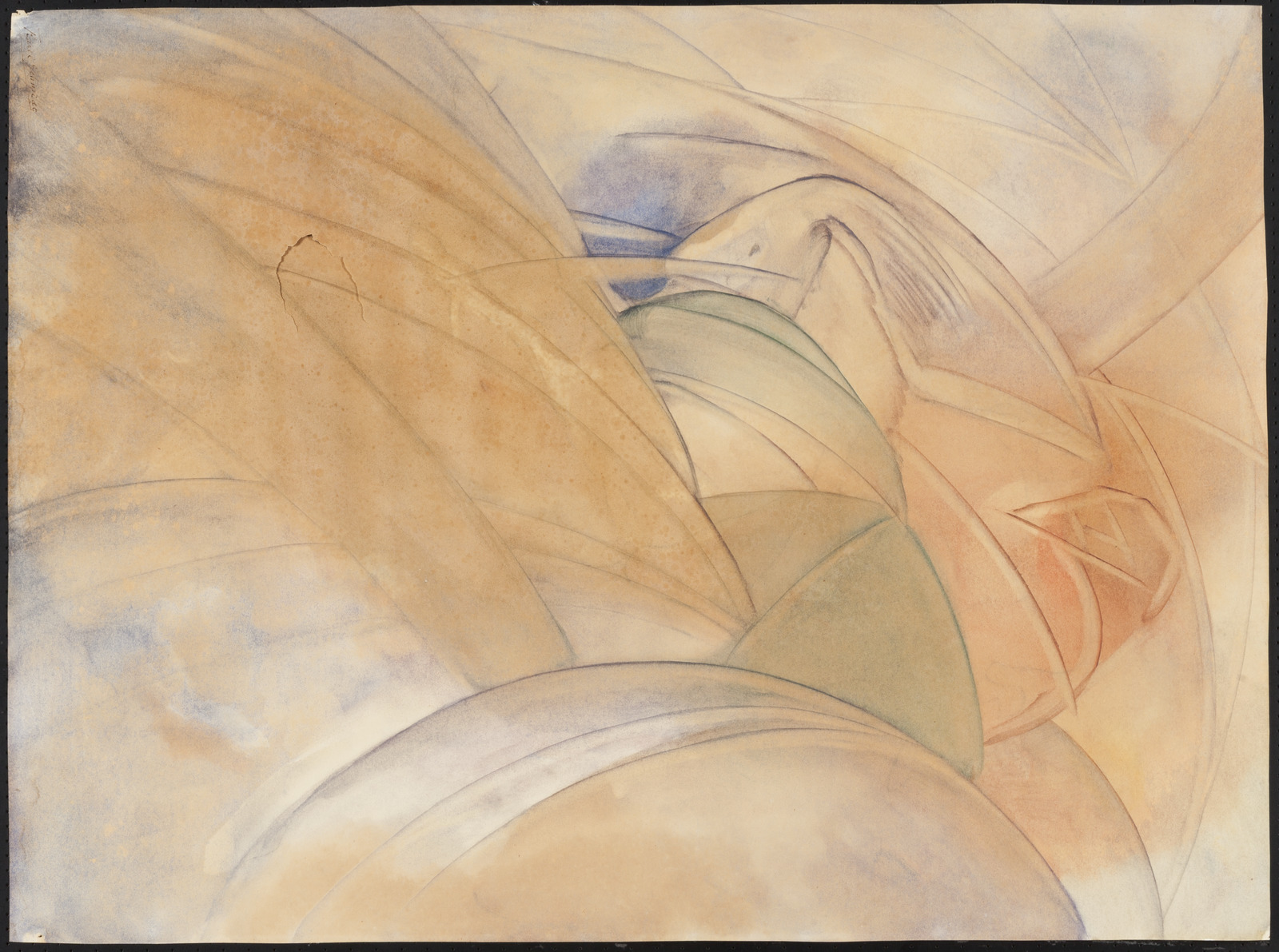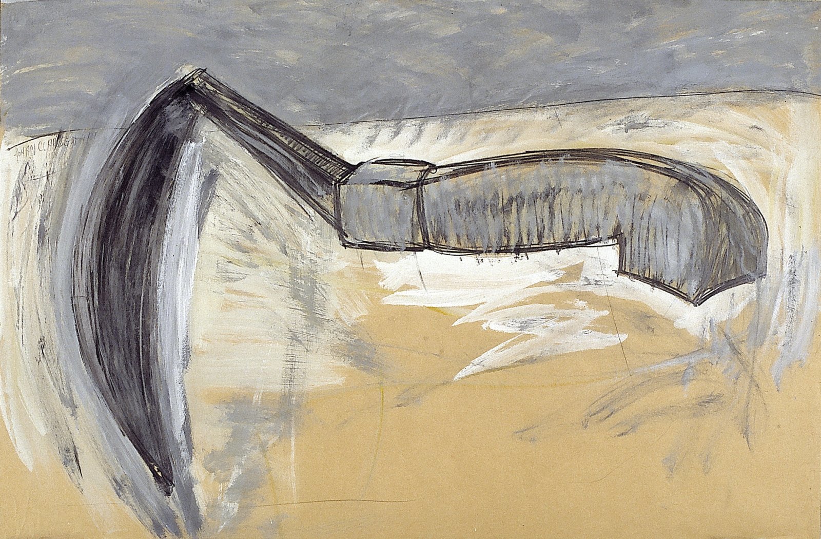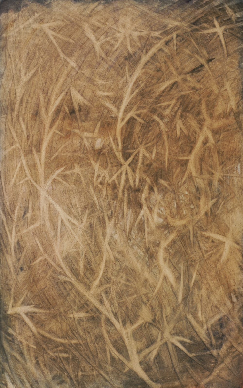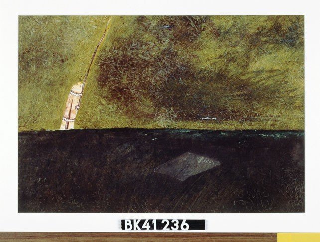 Kleurschets met donkere vorm (kale boom/hand?)