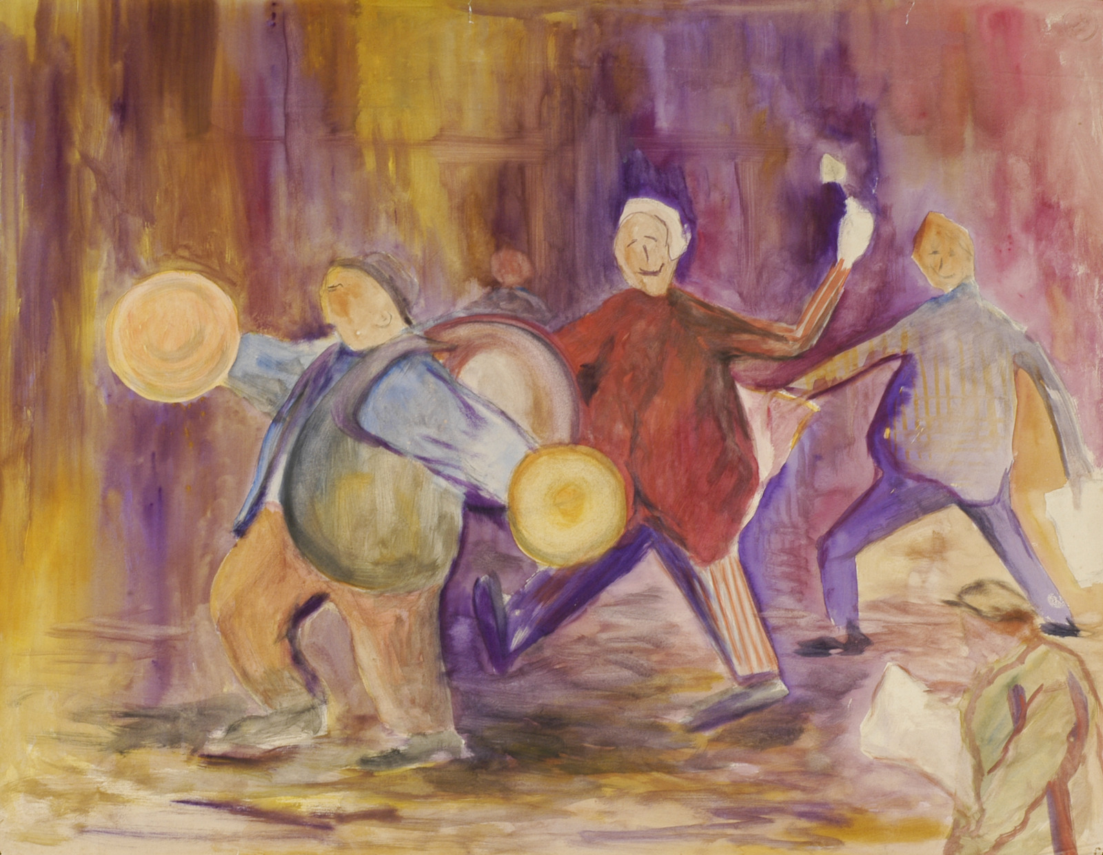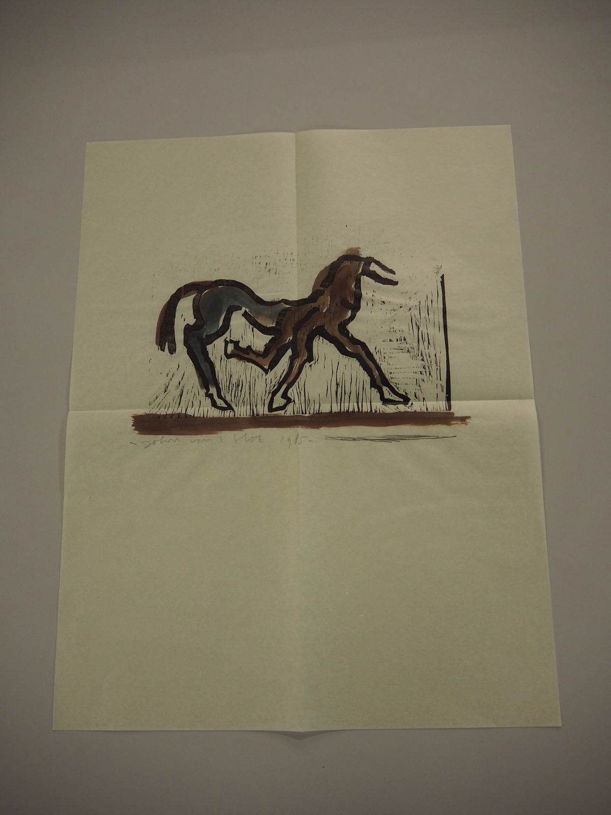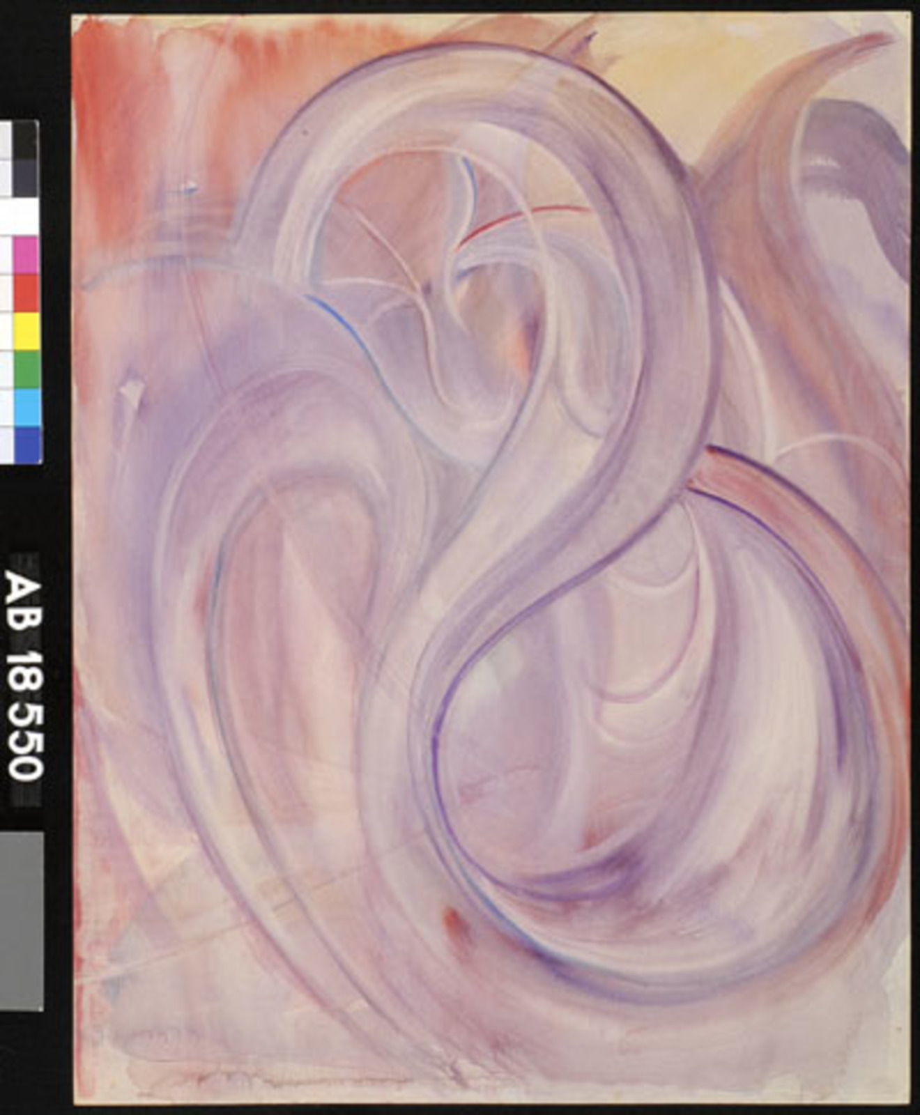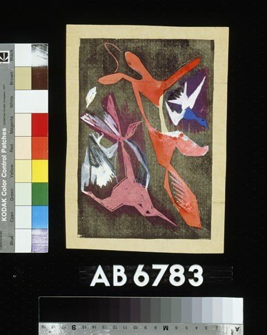 Kleurschets met donkere vorm (kale boom/hand?)