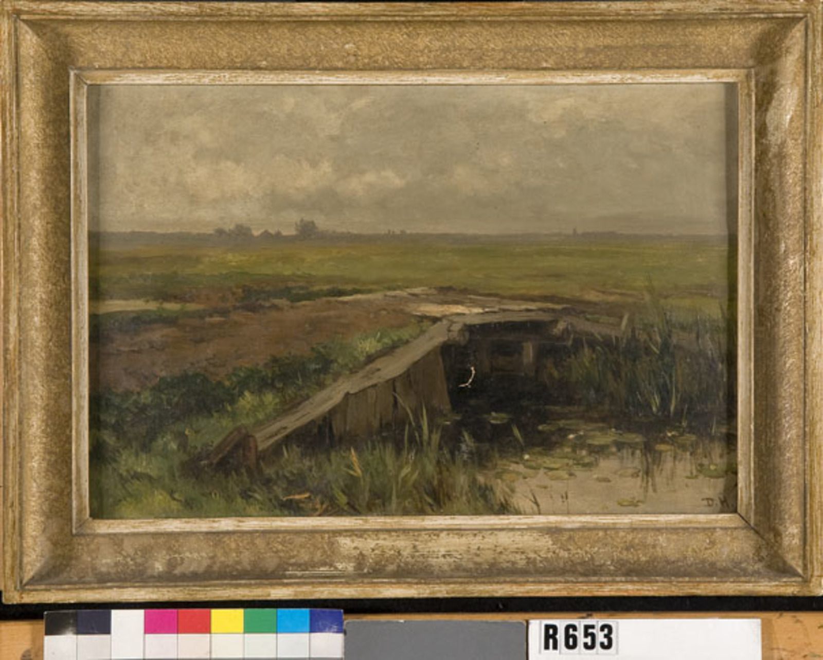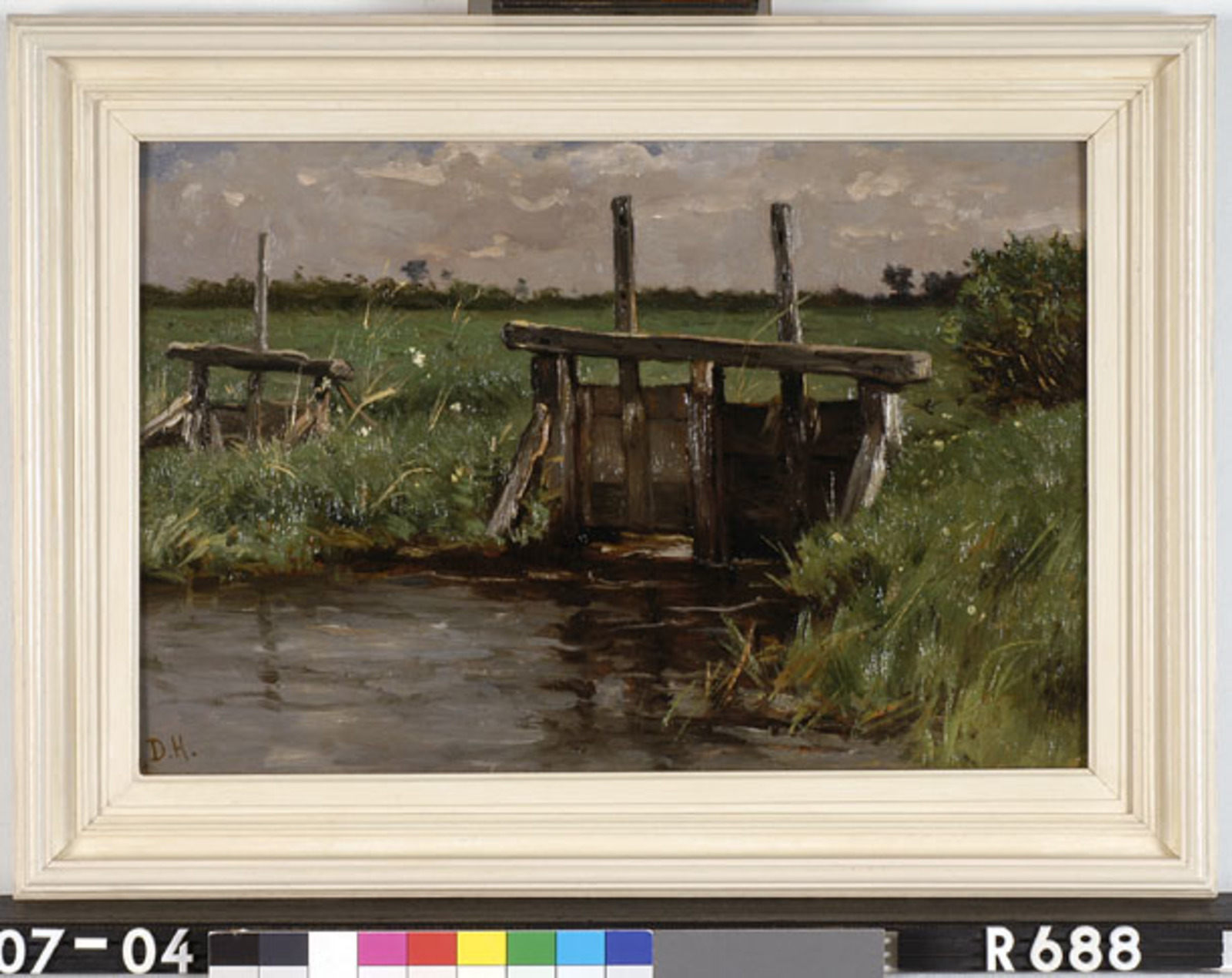 Houten sluisje in weiland