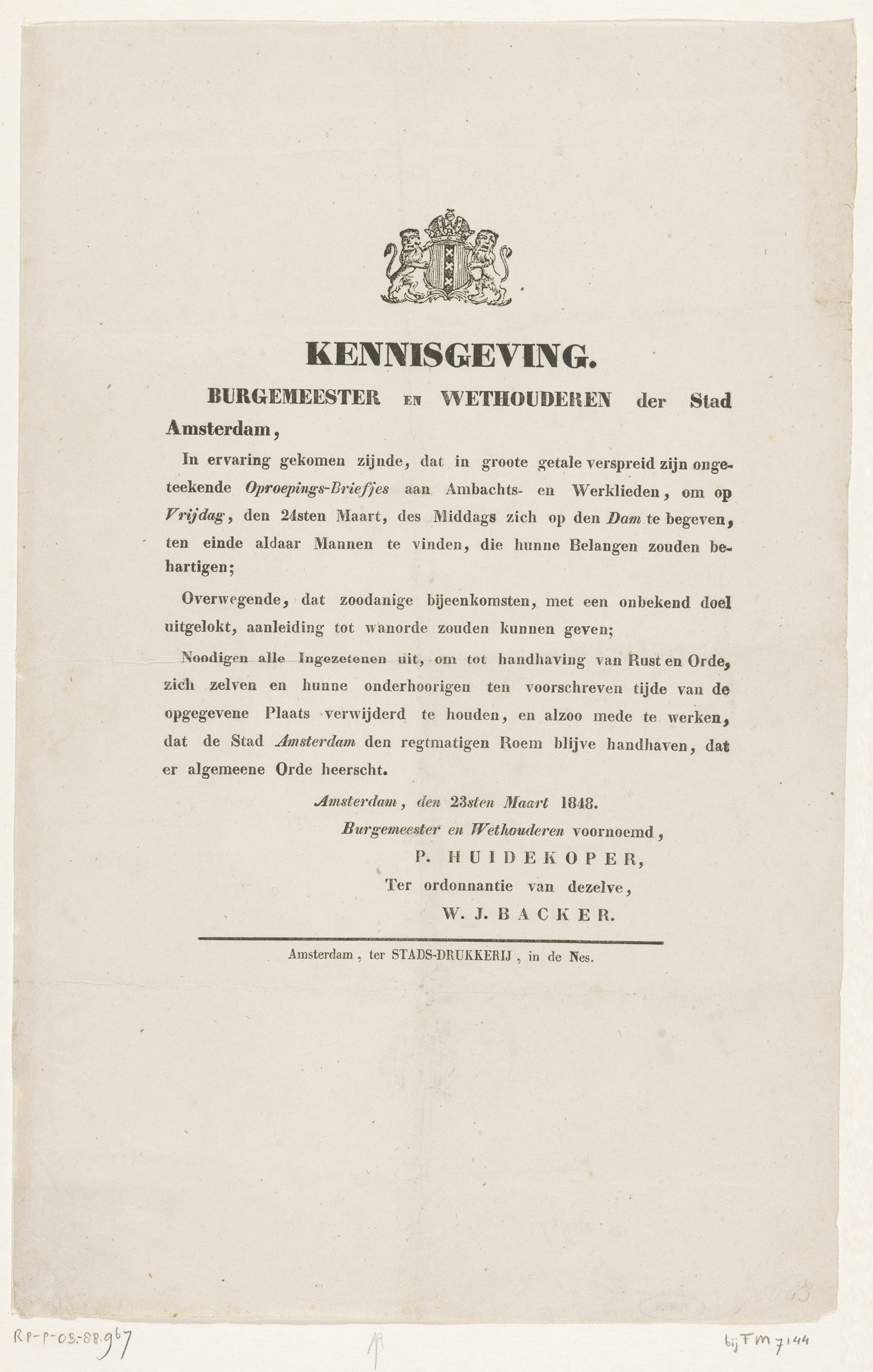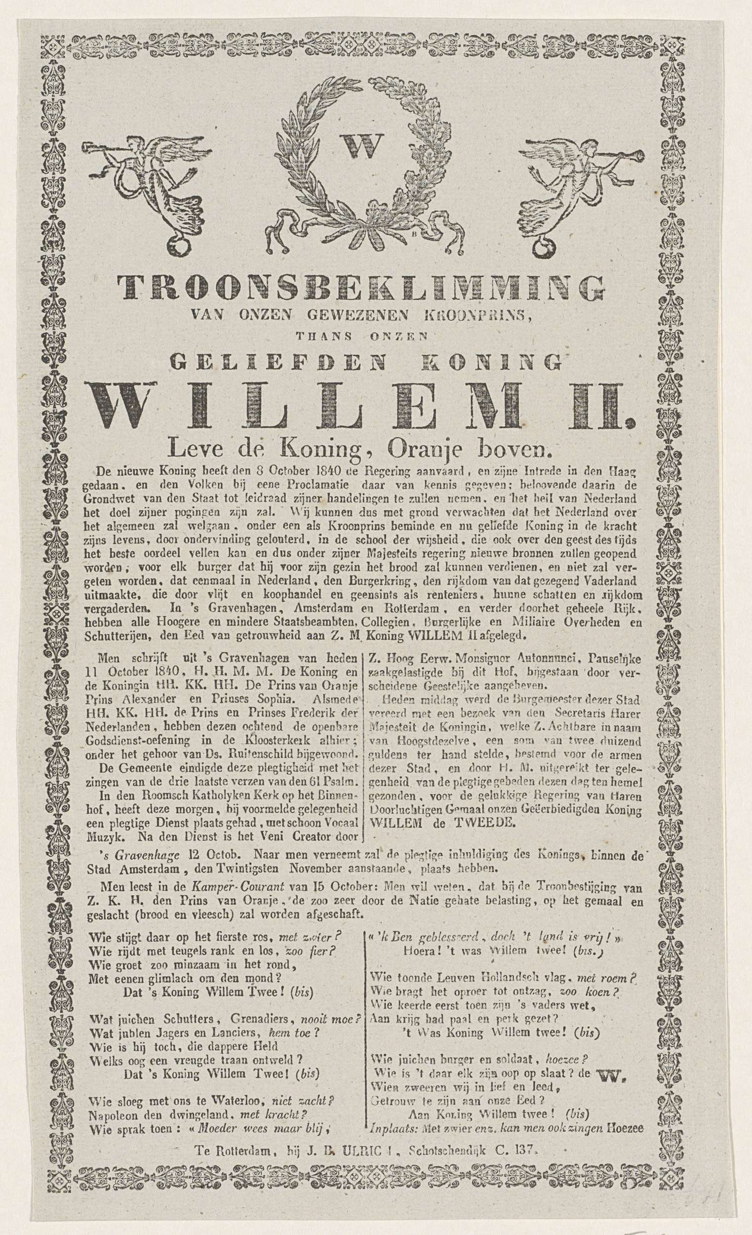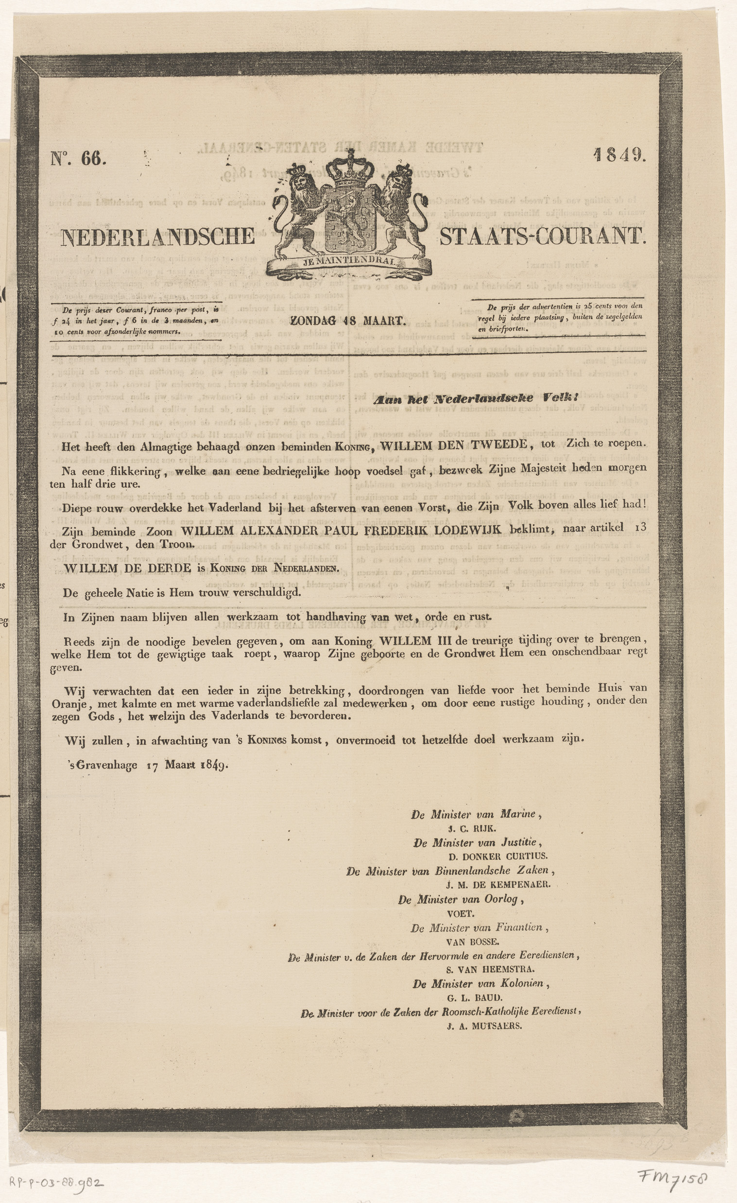 Eerste proclamatie uitgevaardigd door koning Willem ...