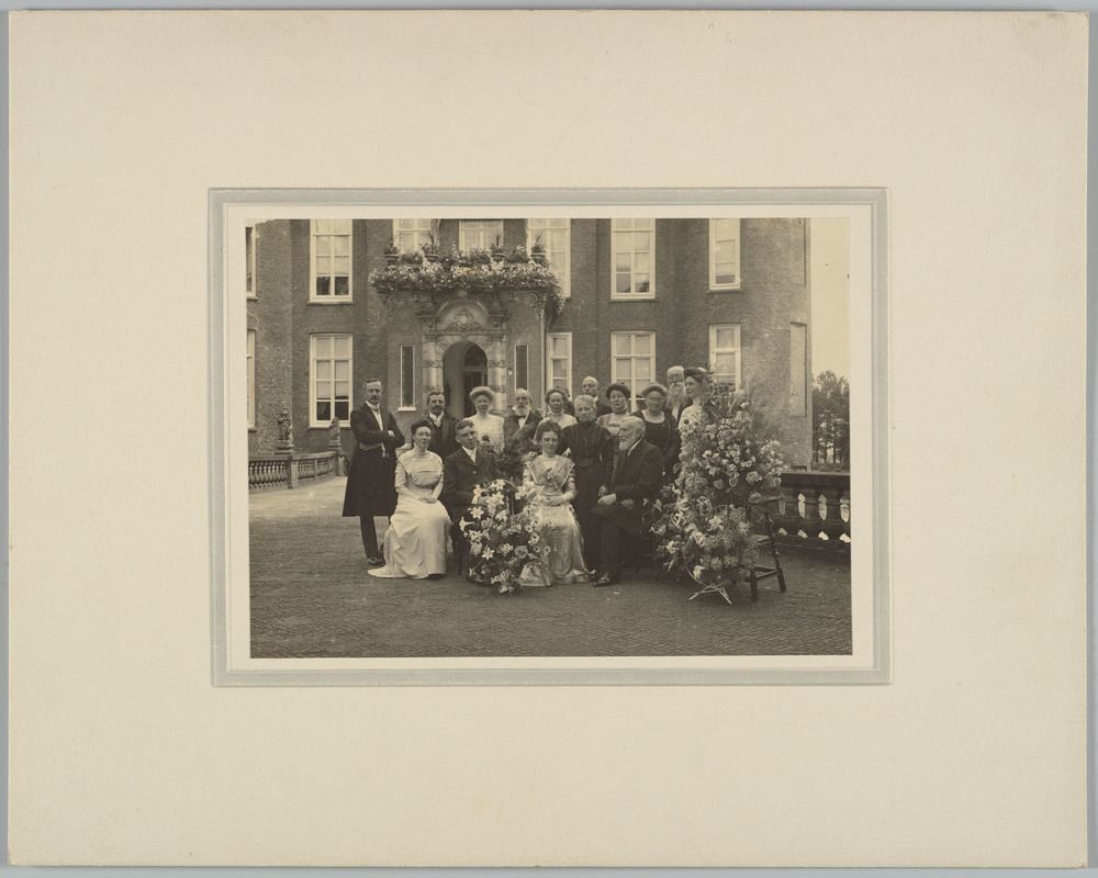 Groepsfoto op het voorplein van kasteel Biljoen