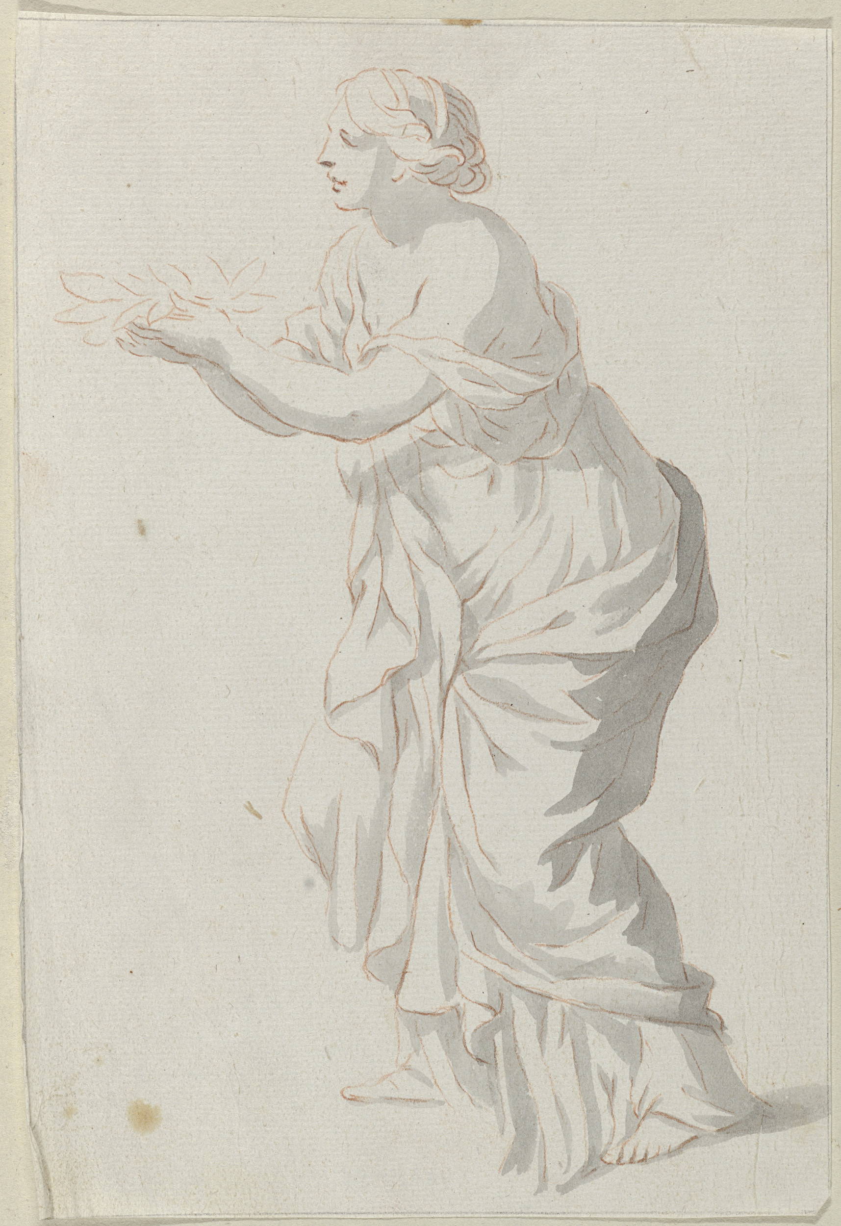 Halffiguur met uitgestrekte arm