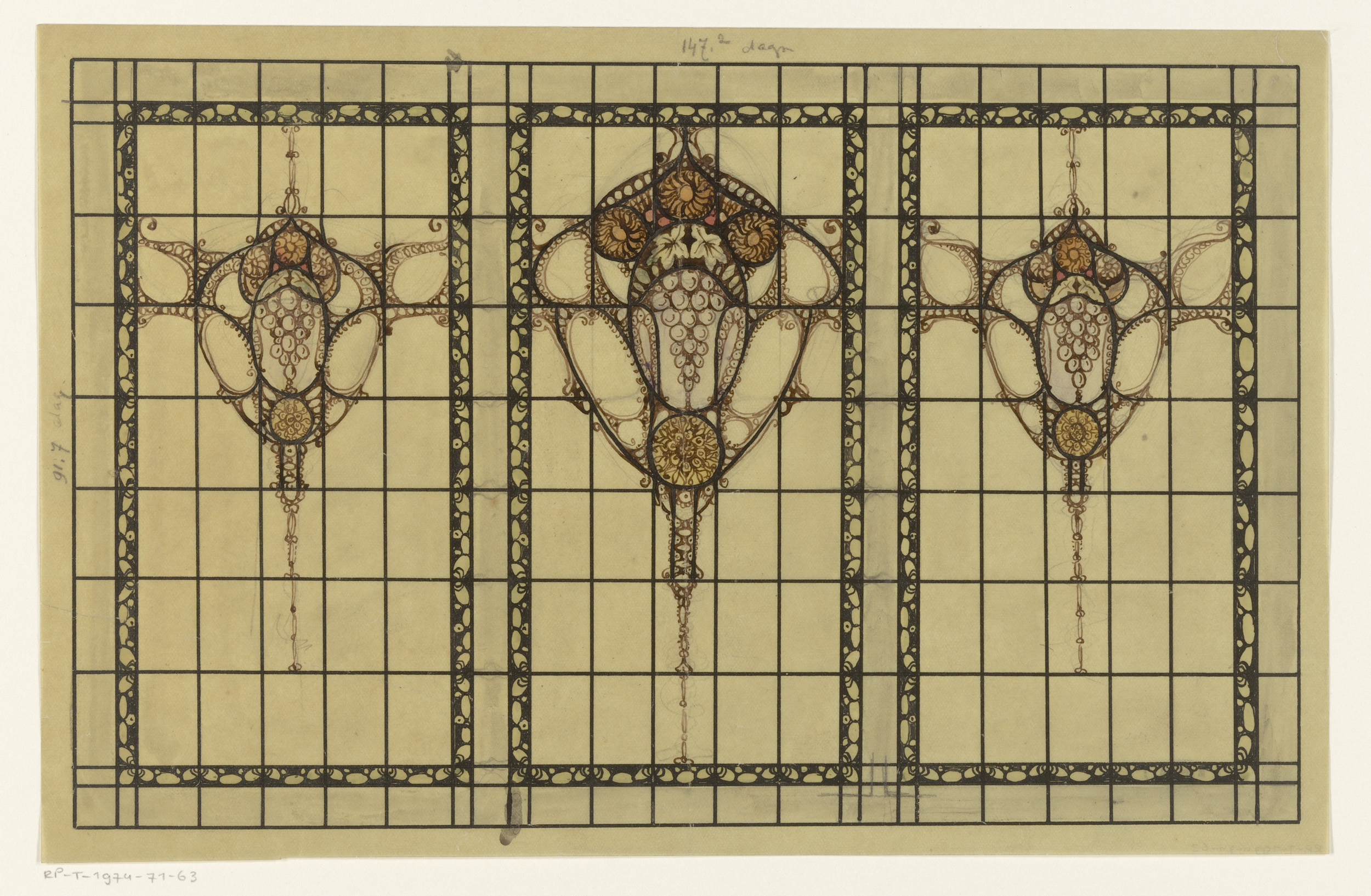 Ontwerp voor een glas in loodraam met bloemornamenten