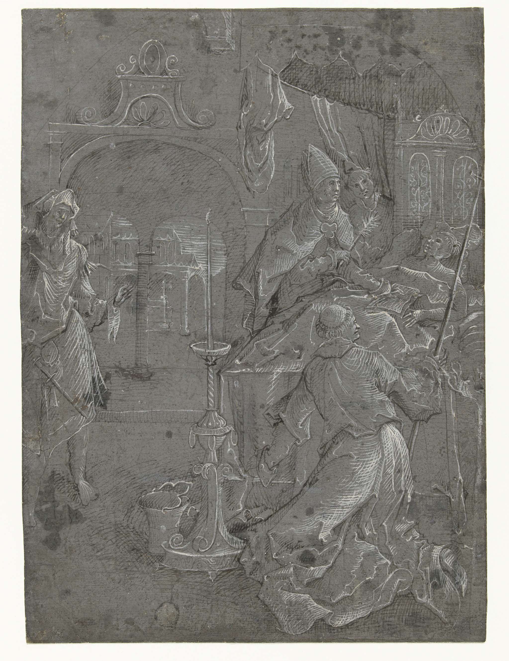 Ontwerp voor een glasraam met een wapen, de figuren ...