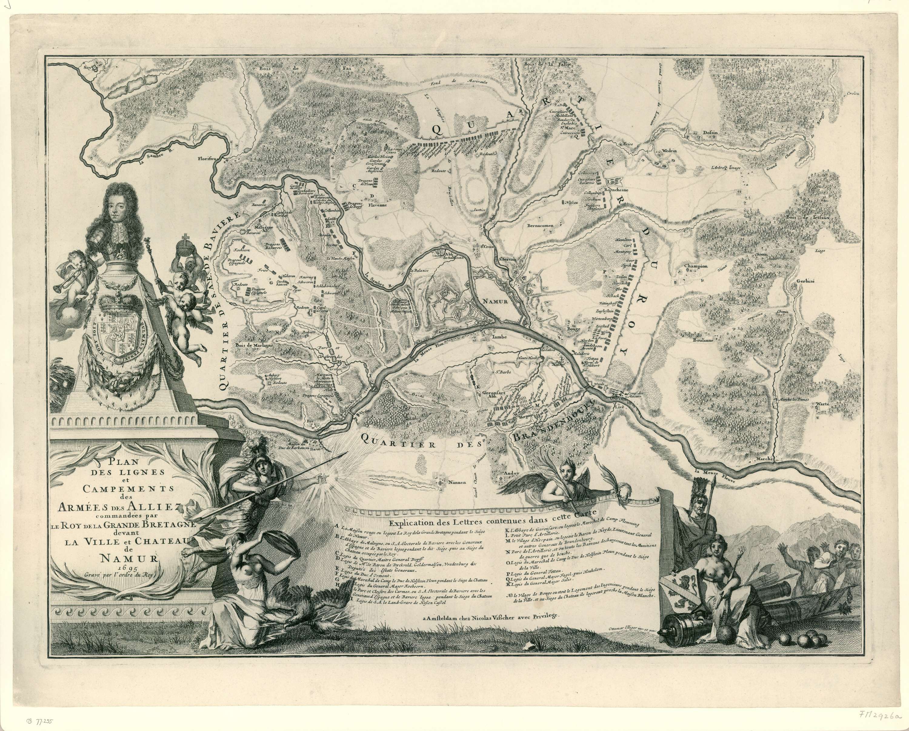 Kaart van de versterkingen van Namen bij het beleg i...