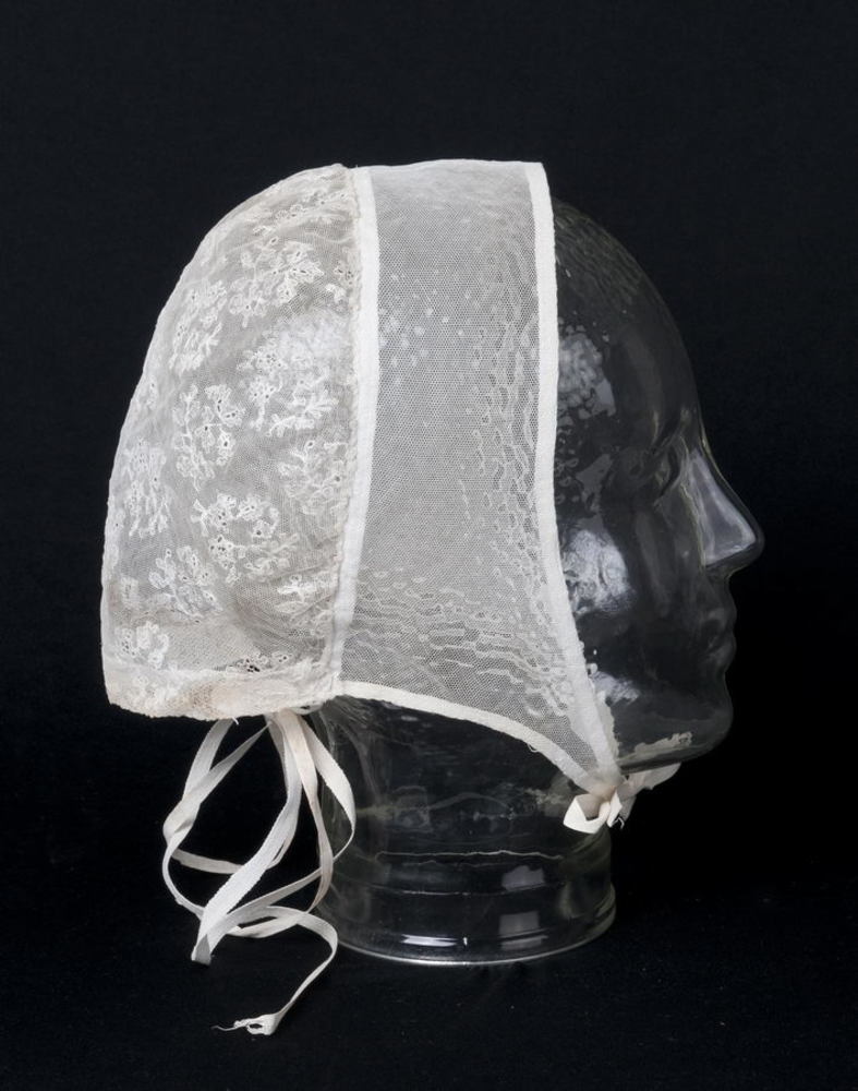 witte handgemaakte muts van katoen-tule 1875-1900