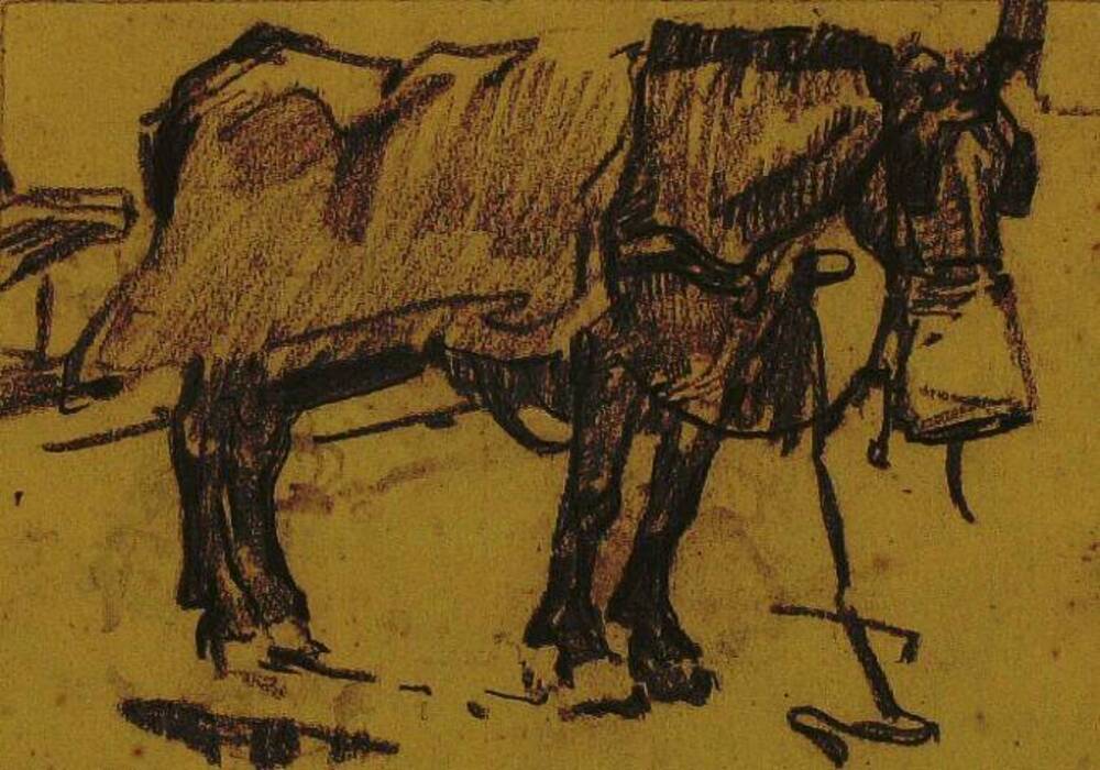 tekening in zwart krijt, voorstellende de Goilberdin...