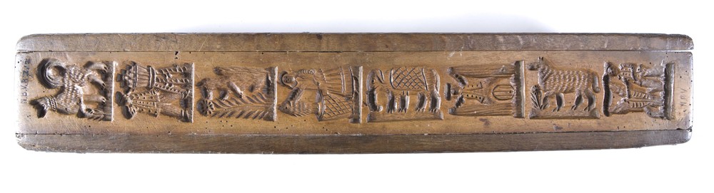 Speculaasplank van hout met 16 figuren o.a. engel, o...
