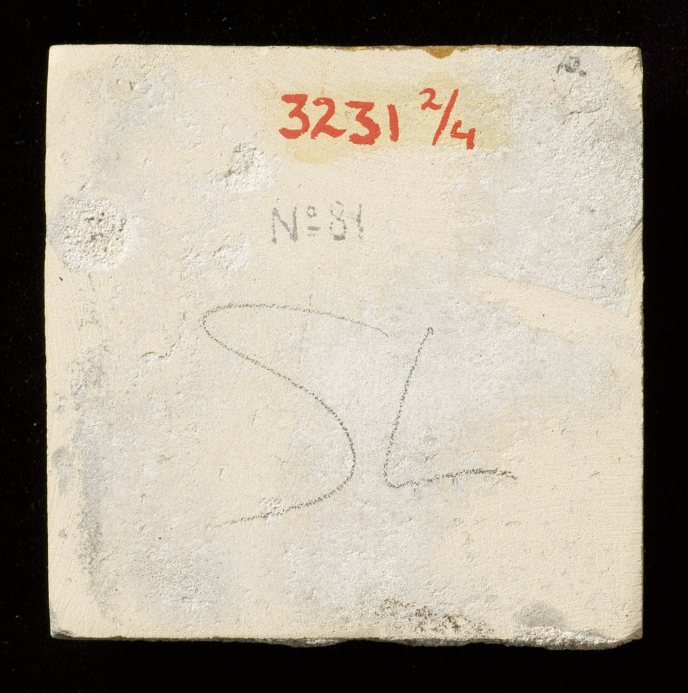 Tegelveld van keramiek met tinglazuur, voorstellende...