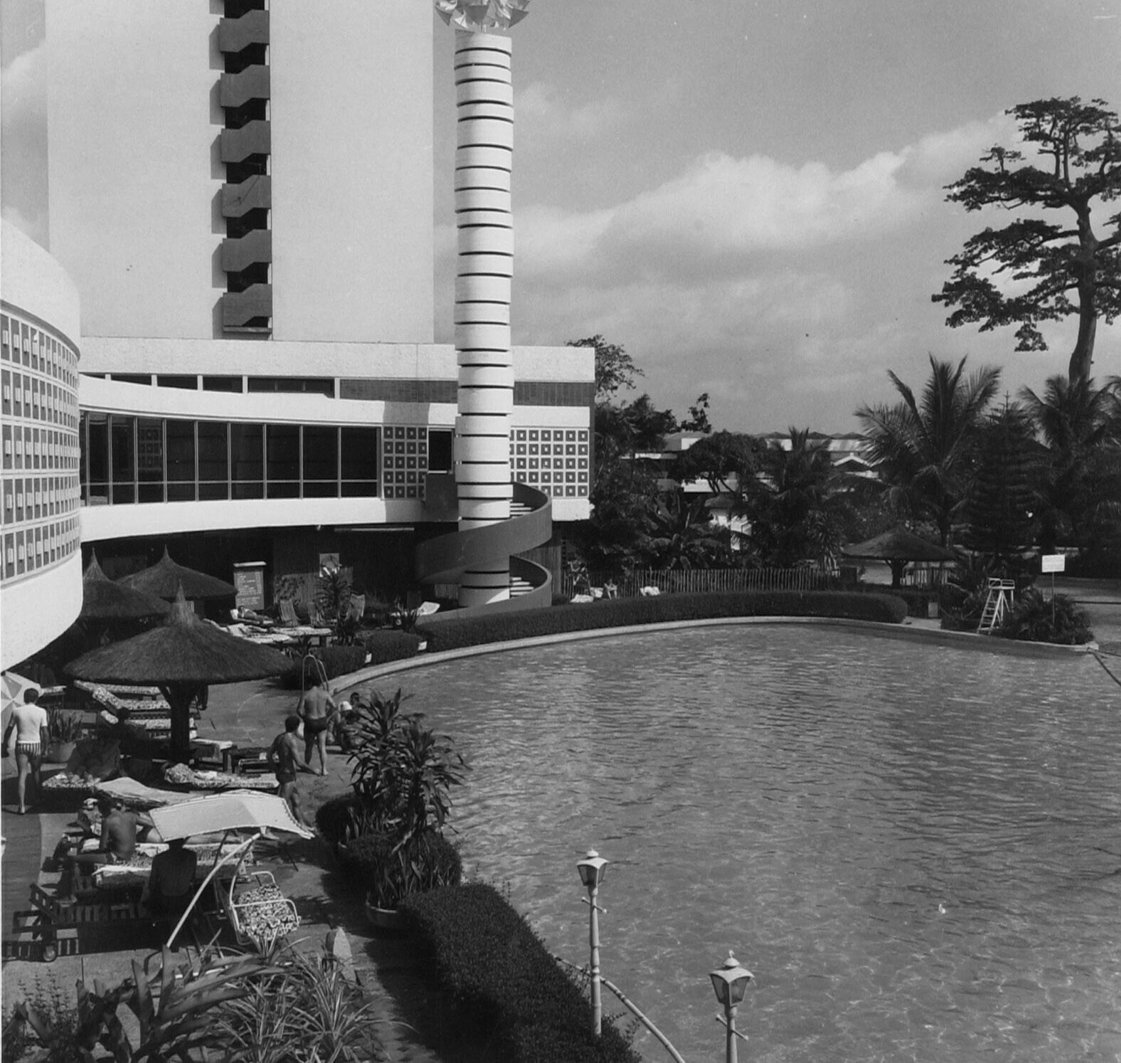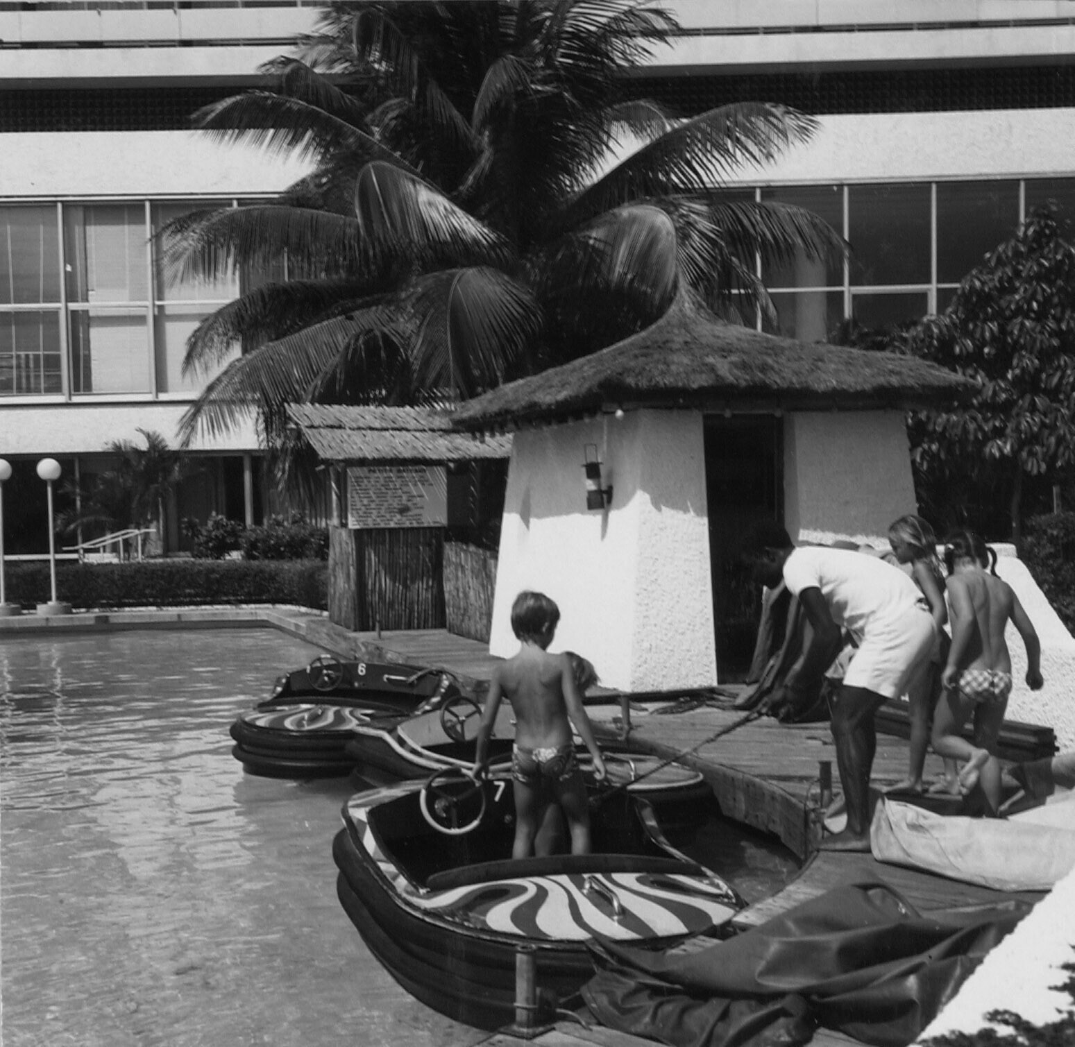 Hotel Ivoire.Spelevaren op de zwemvijver/tuincomplex...