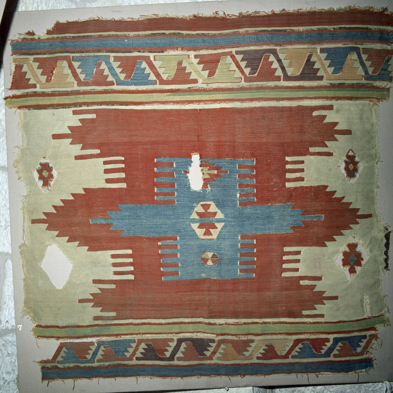 Antieke Turkse tapijten, tentoongesteld in één van d...