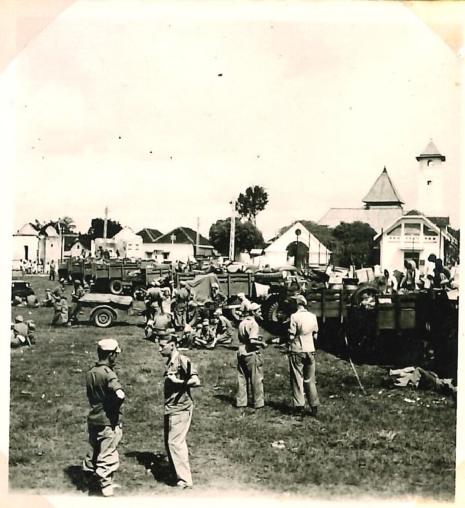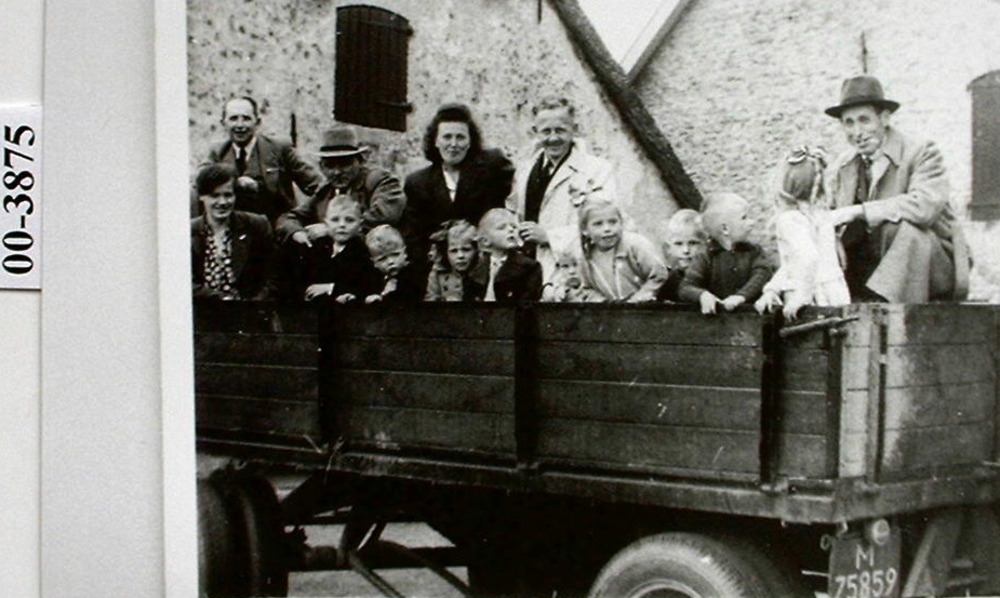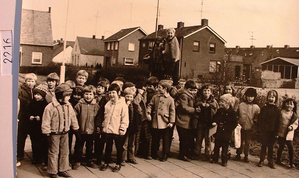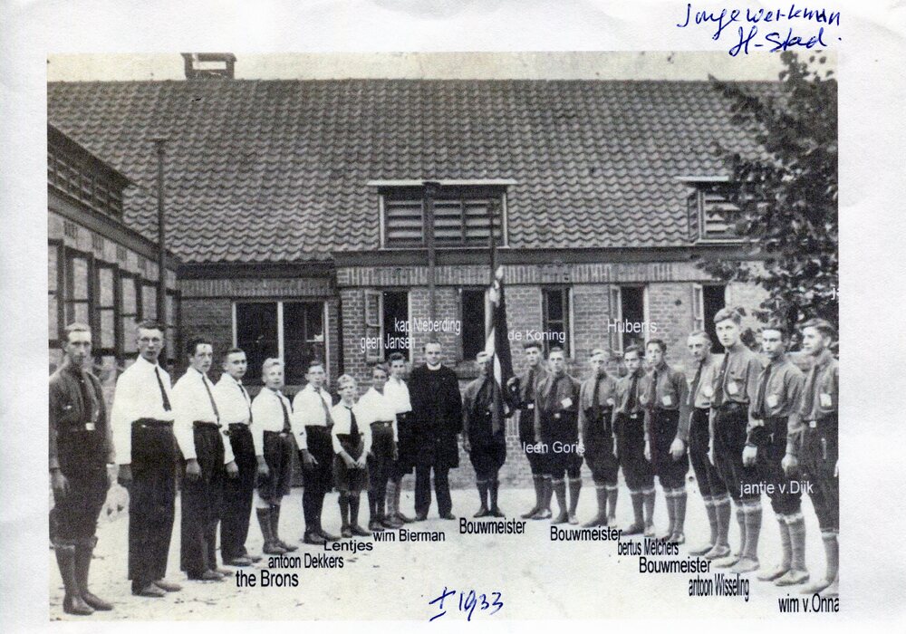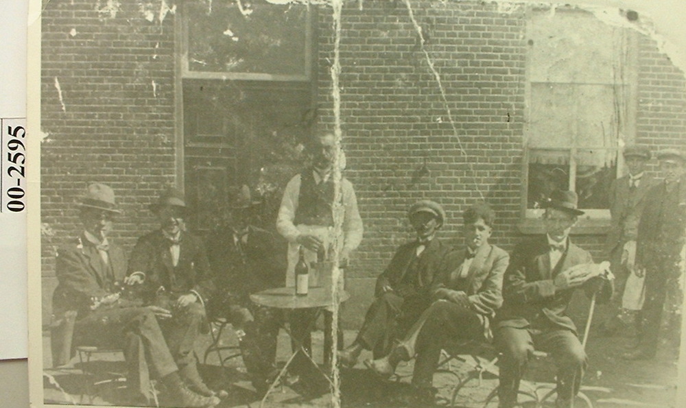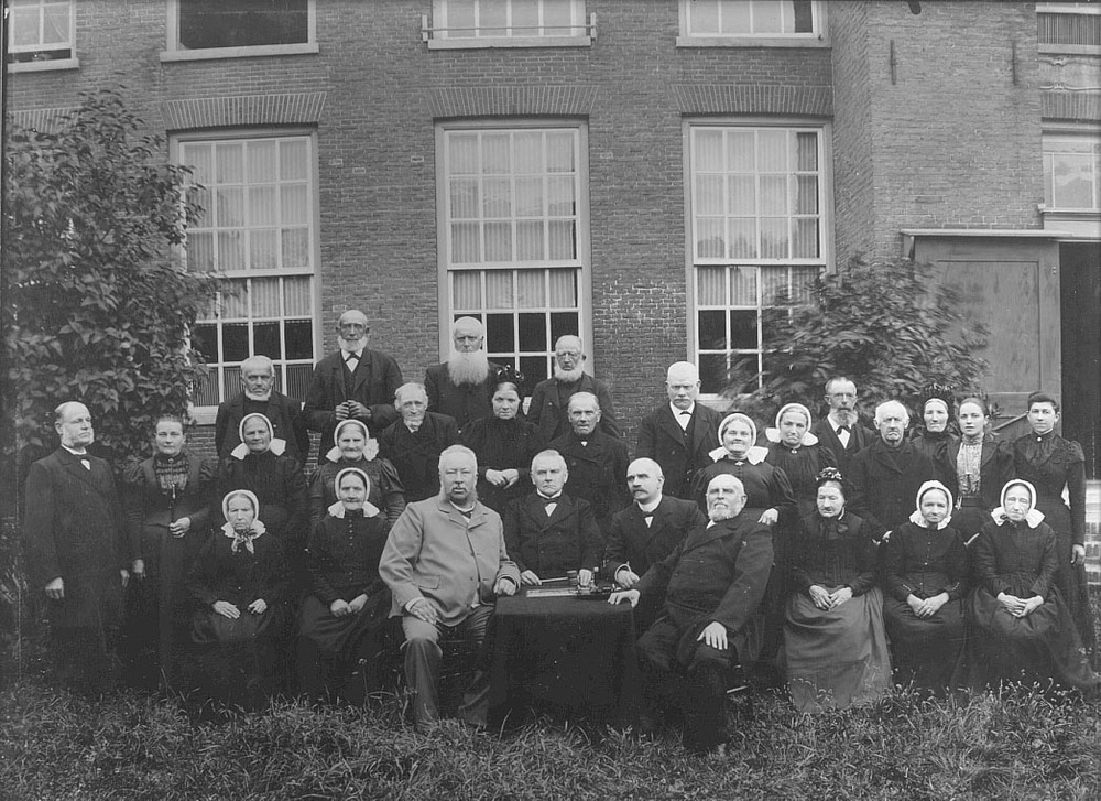 Groep mensen bij het Gochse koffiehuis van de fam La...