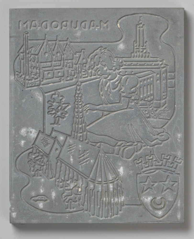 Drukplaat van zink voorstellende de Gimbornfabriek t...