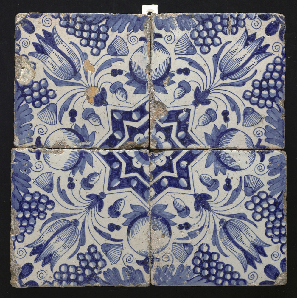 tegel van aardewerk met tinglazuur, voorstellende: o...