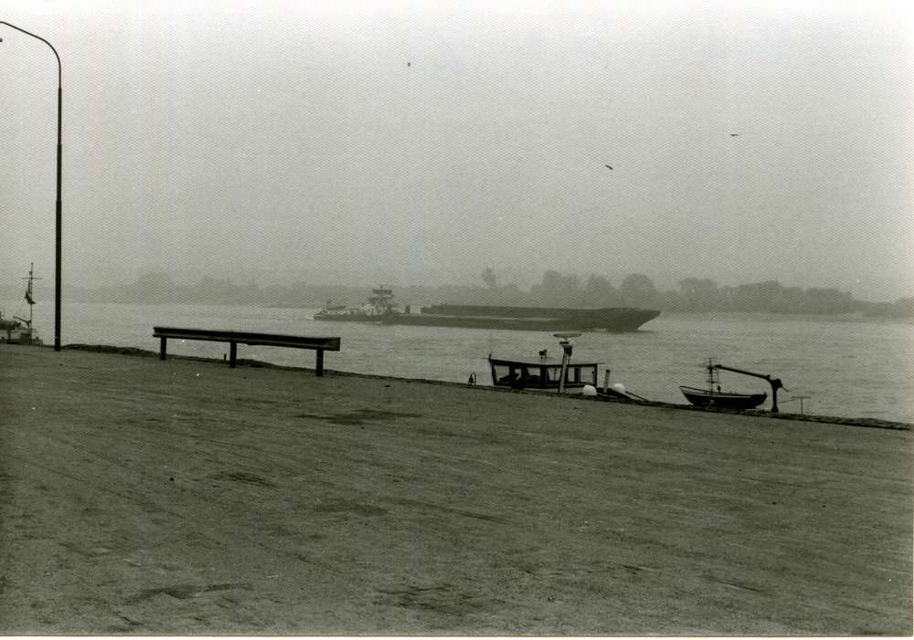 Zwart-wit foto van de aanlegkade van Tolkamer
