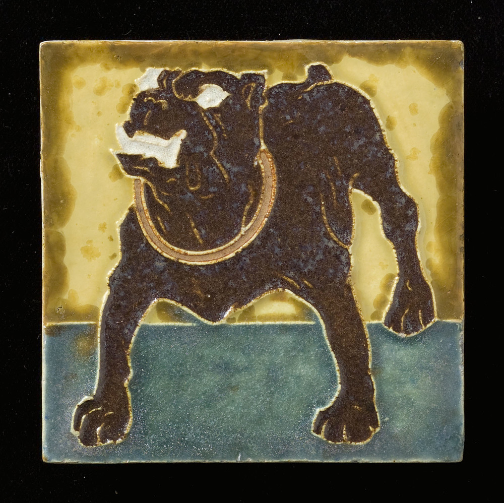 Tegel in cloisonné-techniek, met voorstelling: hond,...