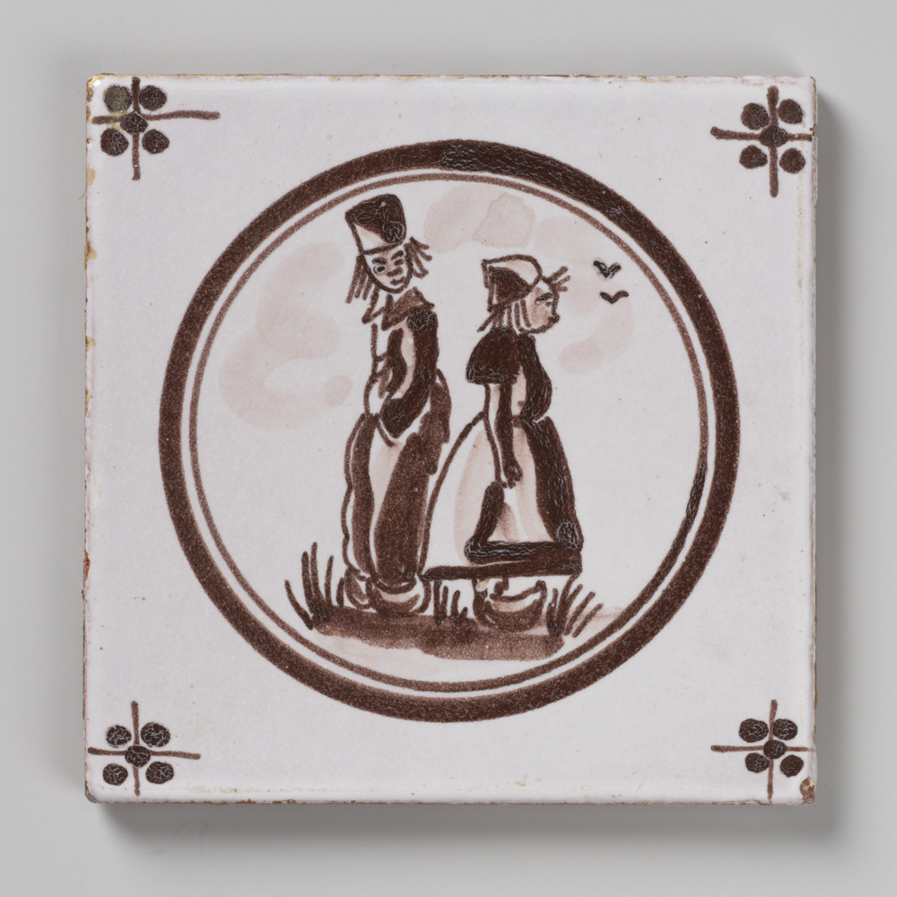 tegel van aardewerk met tinglazuur, voorstellende: m...