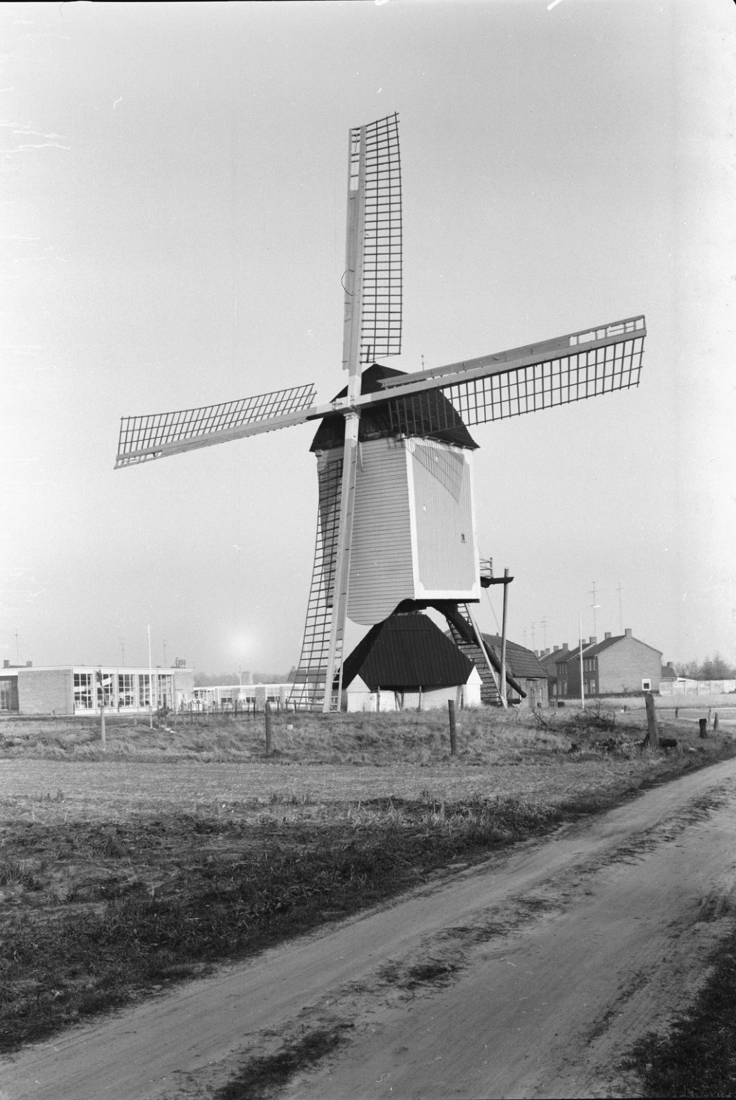 Half gesloten standerdmolen van voren gefotografeerd...