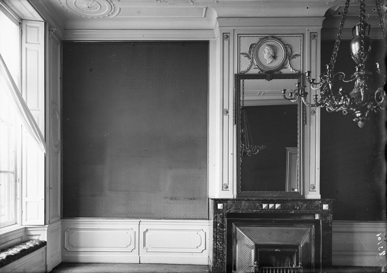 Interieur, reliëf boven de deur van de schepenkamer,...